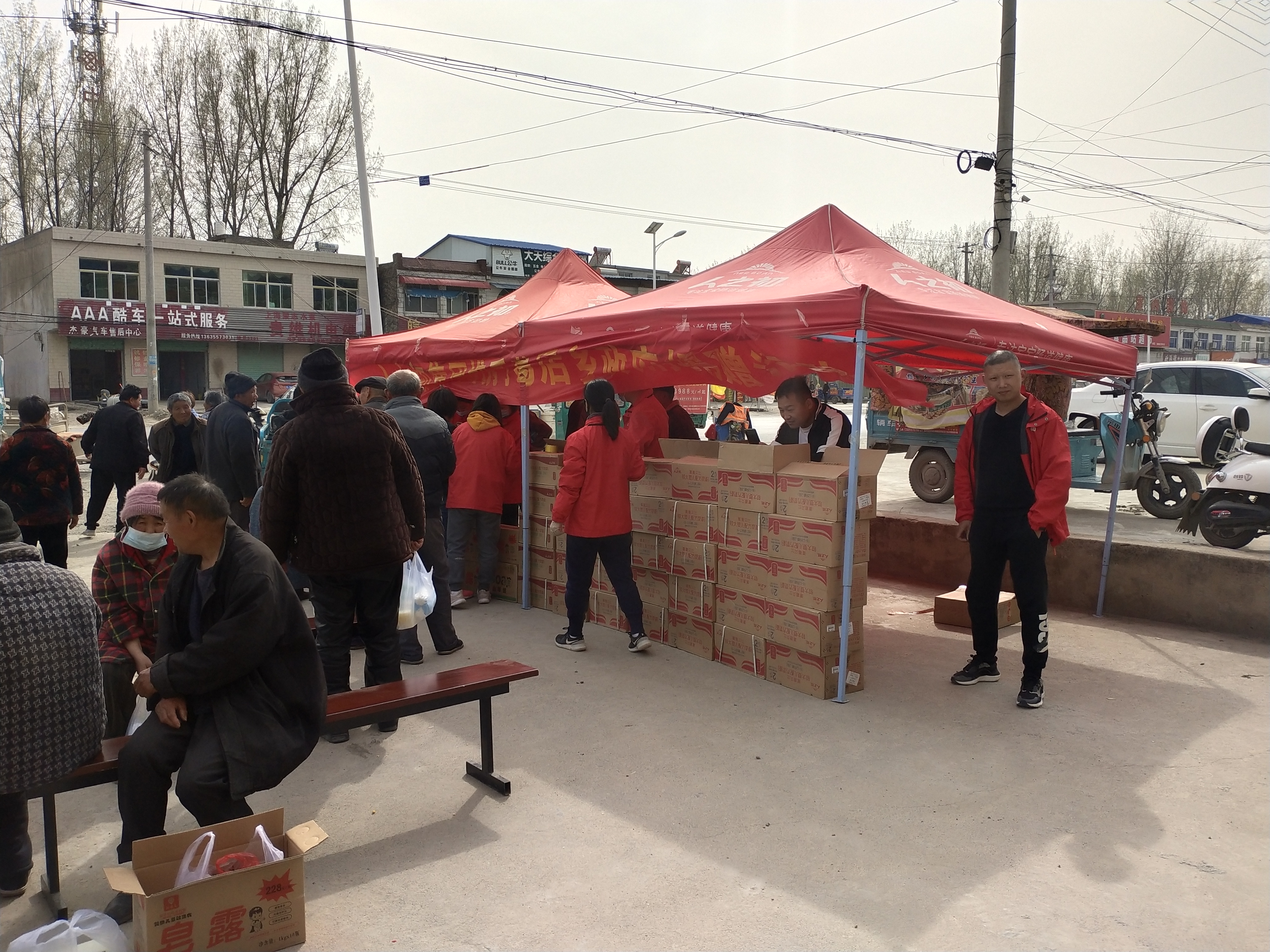 葛店村志愿者帮忙分发疫情防控捐赠物资