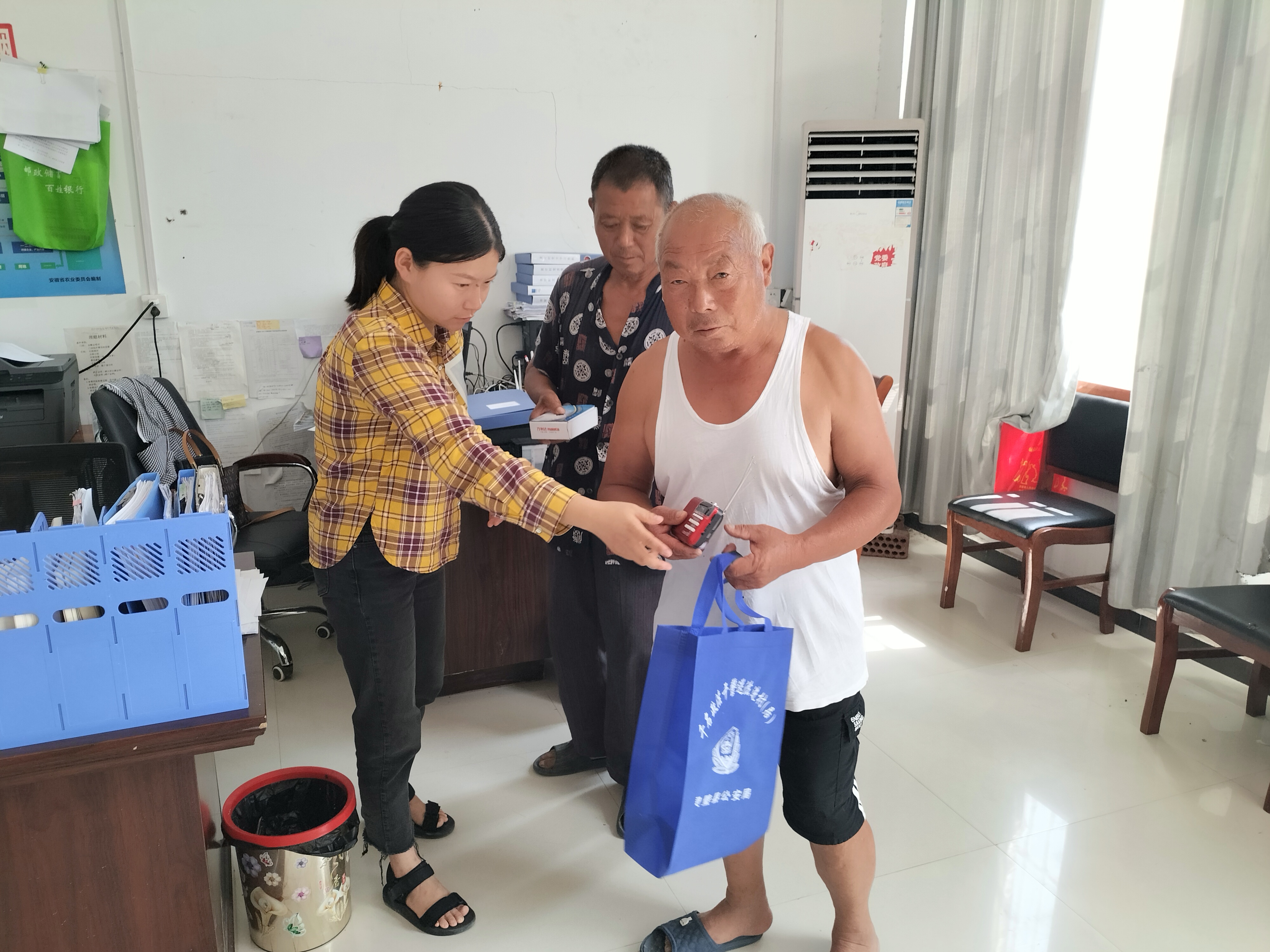 2021年7月,黄圩村党建负责人:胡蓓蓓,为老党员发放党史收音机