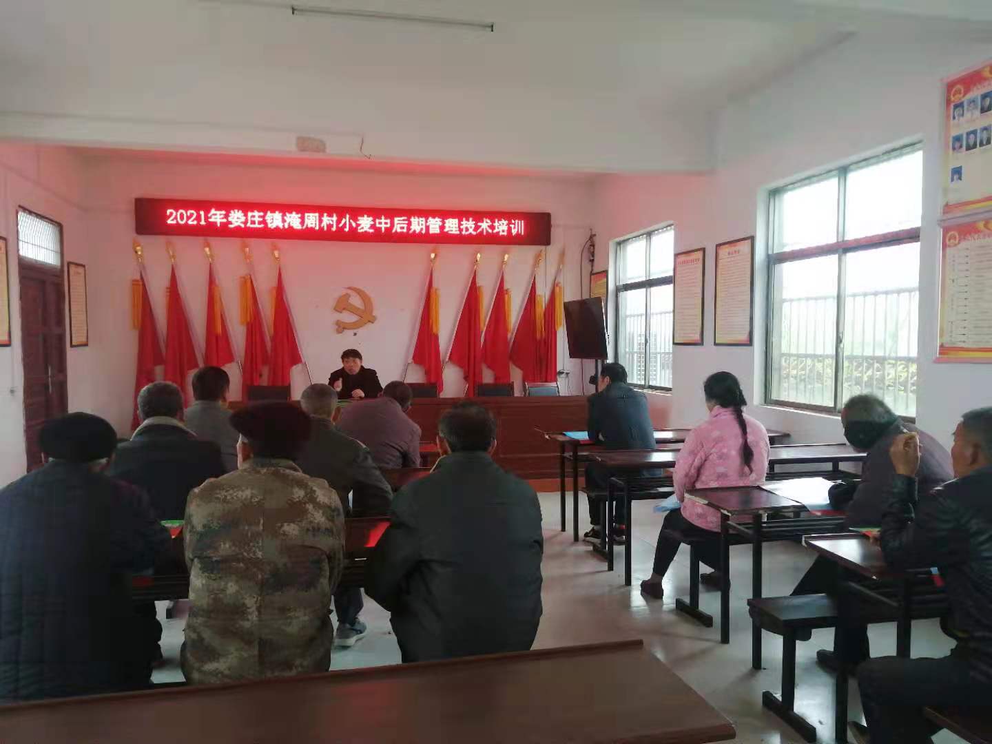 娄庄农经站技术人员到淹周村举办小麦中期病虫害防治培训,目前正是小麦赤霉病高发期,我们一定要在这几天把农药打下去,减少赤霉病的蔓延。