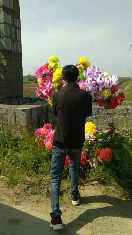4月3日,娄庄镇长集村开展移风易俗活动,组织志愿者清理风头塑料花。倡导文明祭扫.