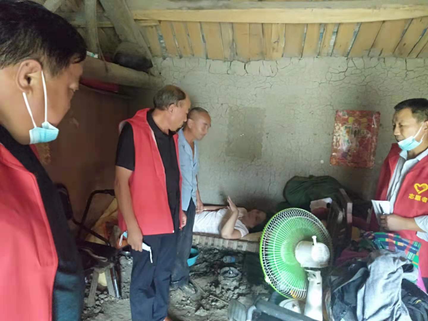 2021年8月31日永定村党员志愿者到后田组看望慰问常年患病人员王魁英,了解老人生活中存在哪些困难。帮助解决。