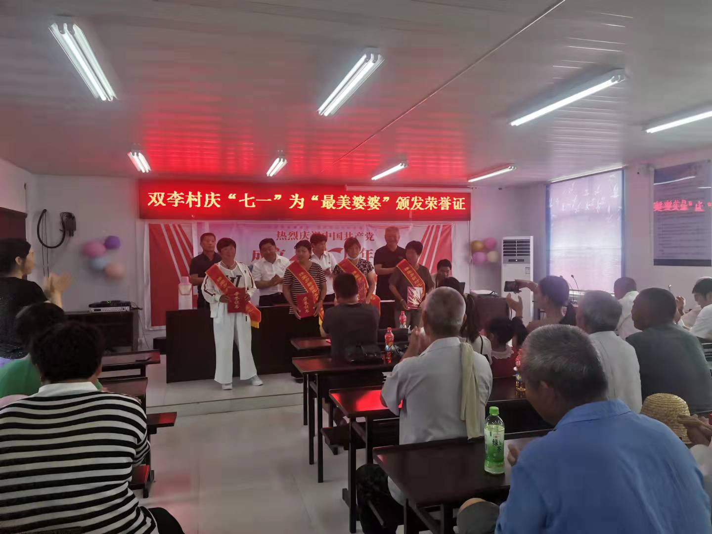2021年6月29日下午,在双李村村部召开“最美婆婆”表彰大会,表彰一部分促进家庭稳定和谐的婆婆,为她们颁发了荣誉证书。