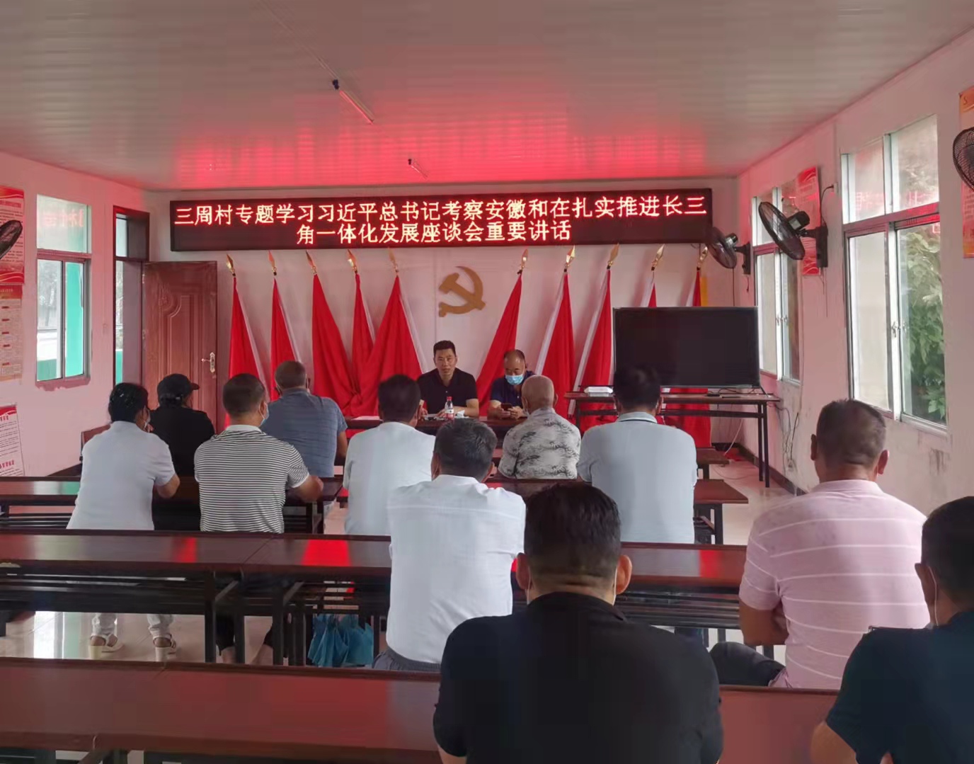 三周村党员干部学习《习近平总书记考察安徽和在扎实推进长三角一体化发展座谈会重要讲话》