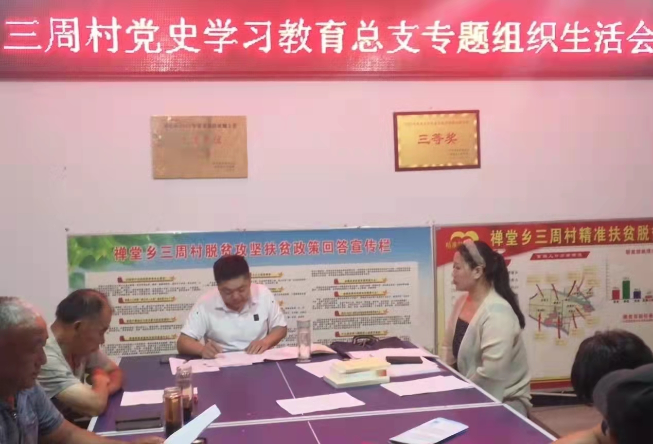 2021年7月29日上午8:30分,由三周村总支书记解威同志,组织召开党史学习教育专题组织生活会。