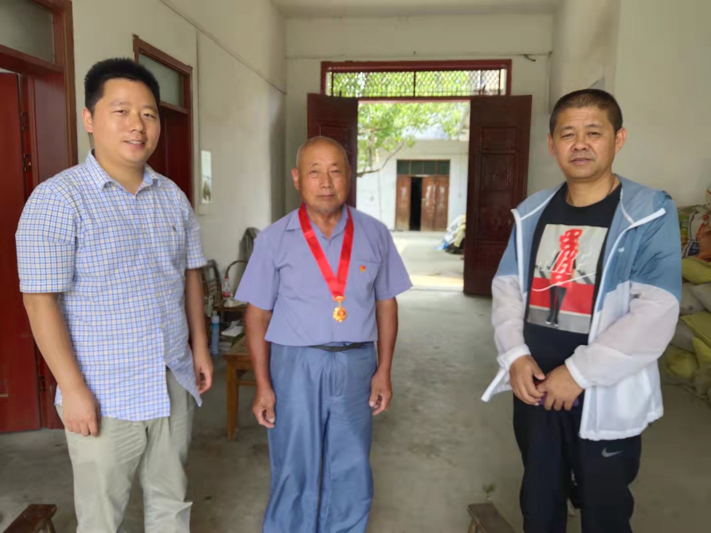 2021年7月1日,娄庄镇汴河村第一书记张磊、总支书记王永,亲自上门为汴河村党龄50周年的老党员颁发纪念章。